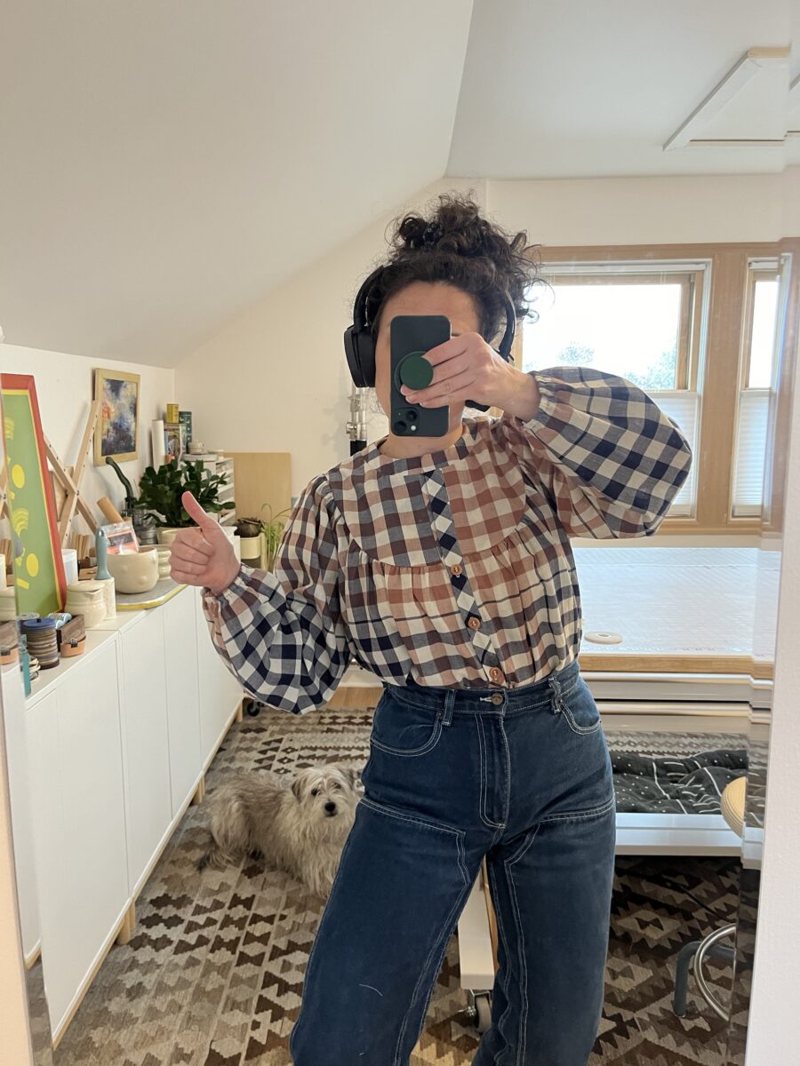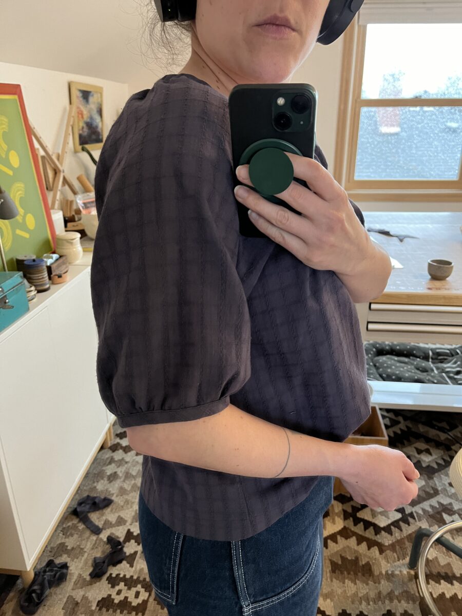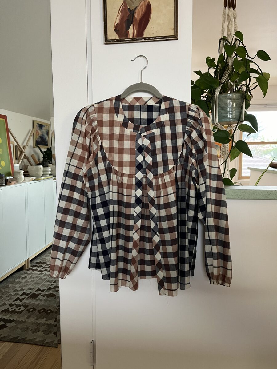 Love the plaid top! That fabric is great – if you felt the energy, you could change the poofy sleeves..but I know how that goes.