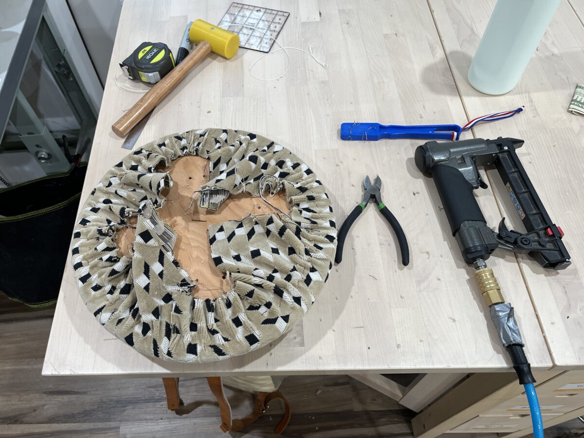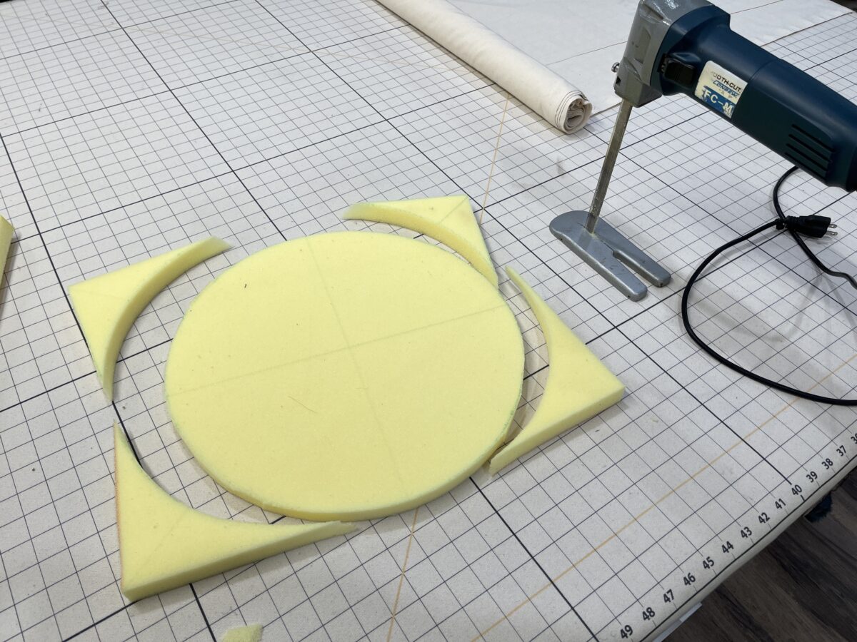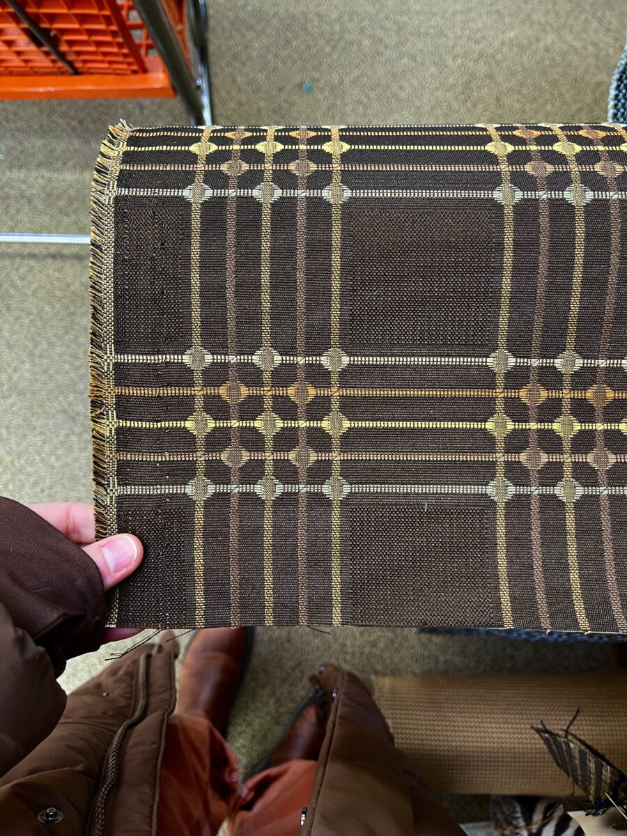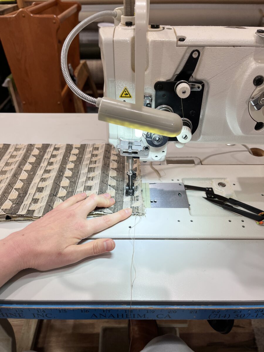 Pre-quilted fabric comes with risks and this one was no exception. The first kinda bummer part was that the brown was clearly the wrong side of the fabric – the stitch quality is just inferior. And then there are the issues of thread nests, skipped stitches, and thread tails. Thread tails are just clipped and burned and the other issues are hopefully just avoided during cutting. If you want perfect quilted lines, you gotta stitch them yourself.