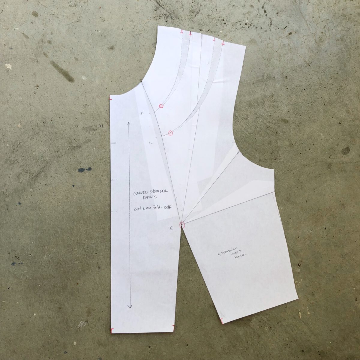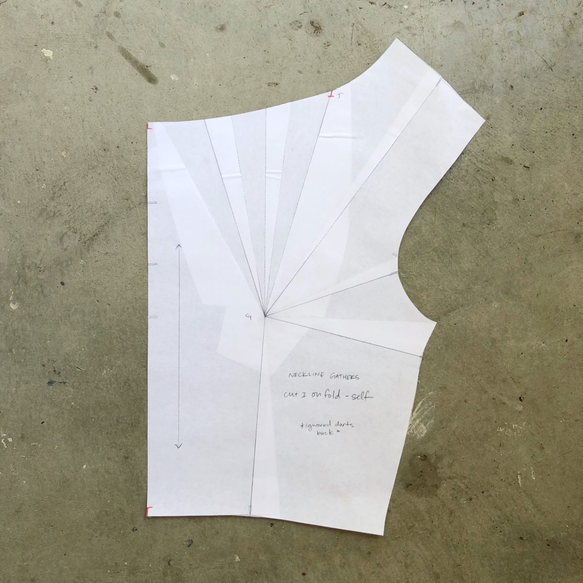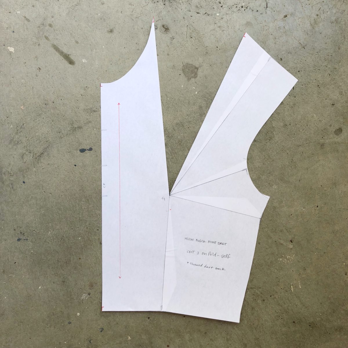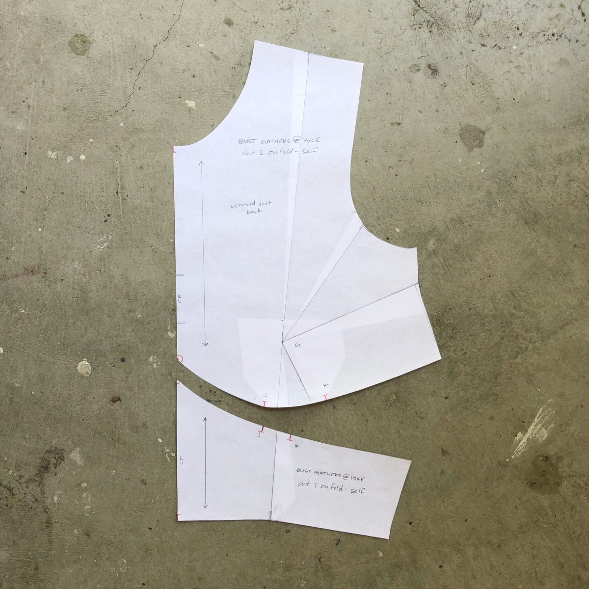 I wanted the bodice of the dress to be fairly short so I used the lengthen/shorten line as the bottom edge. To that I added 1/2″ of seam allowance and squared the corners to make it attach to the skirt a little easier.