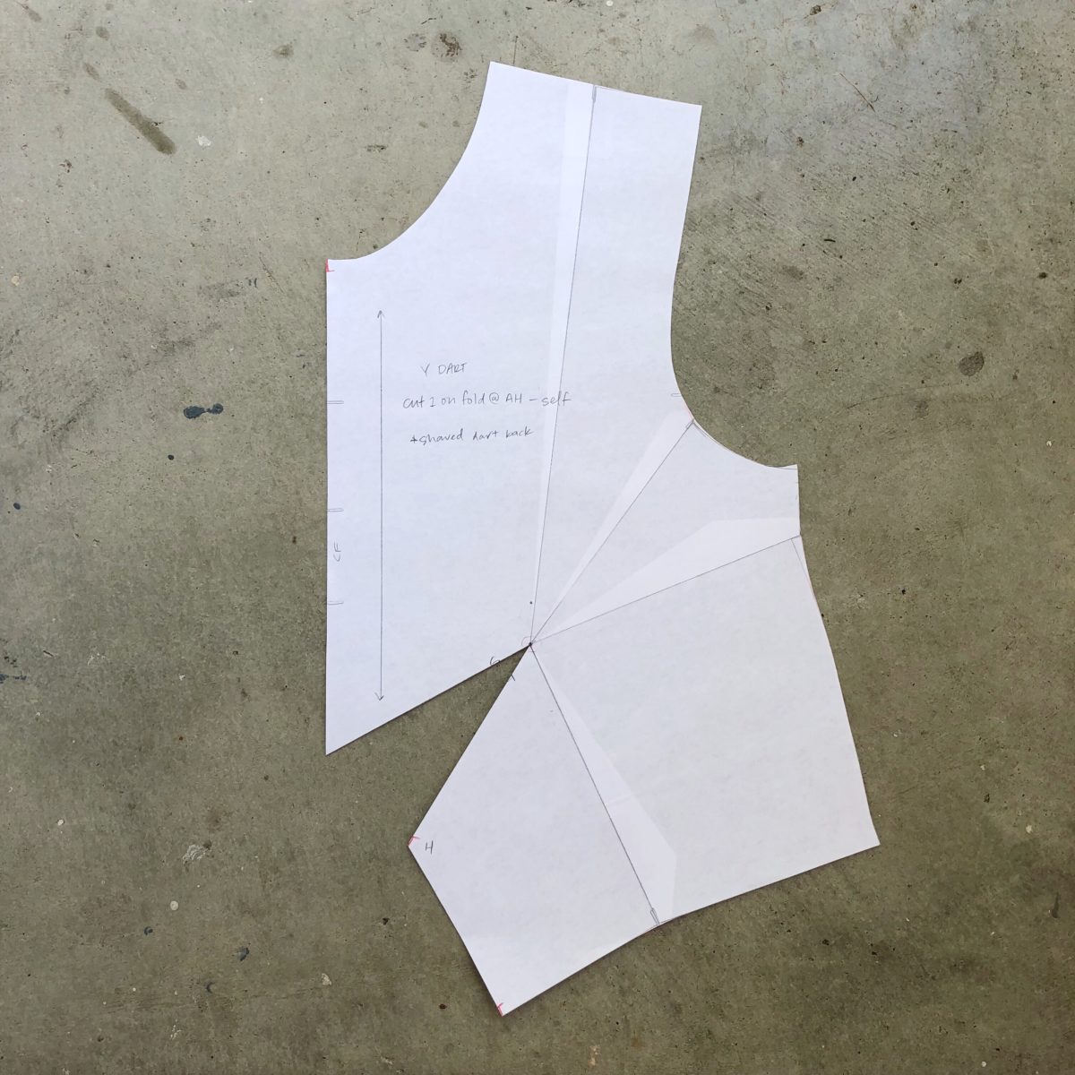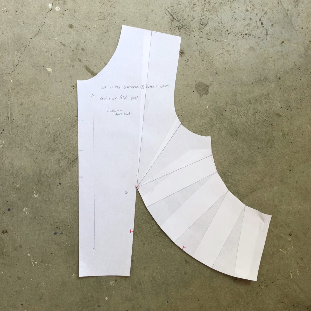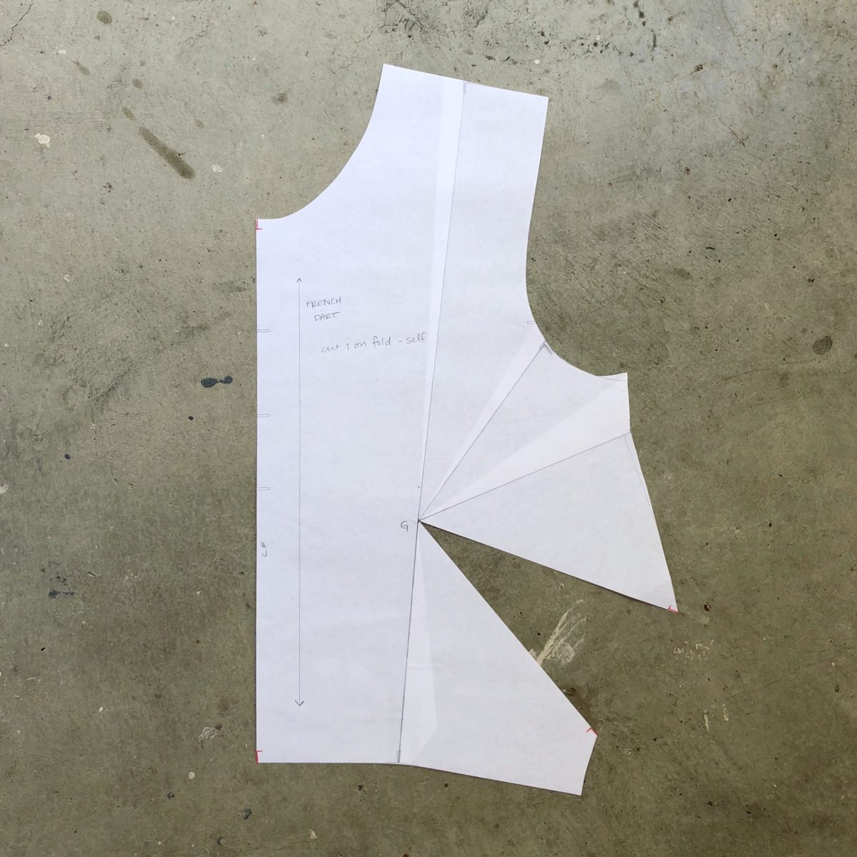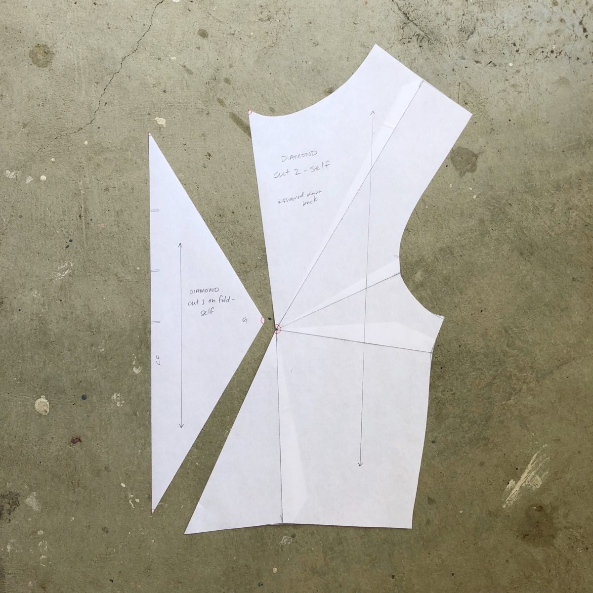 I wanted the bodice of the dress to be fairly short so I used the lengthen/shorten line as the bottom edge. To that I added 1/2″ of seam allowance and squared the corners to make it attach to the skirt a little easier.