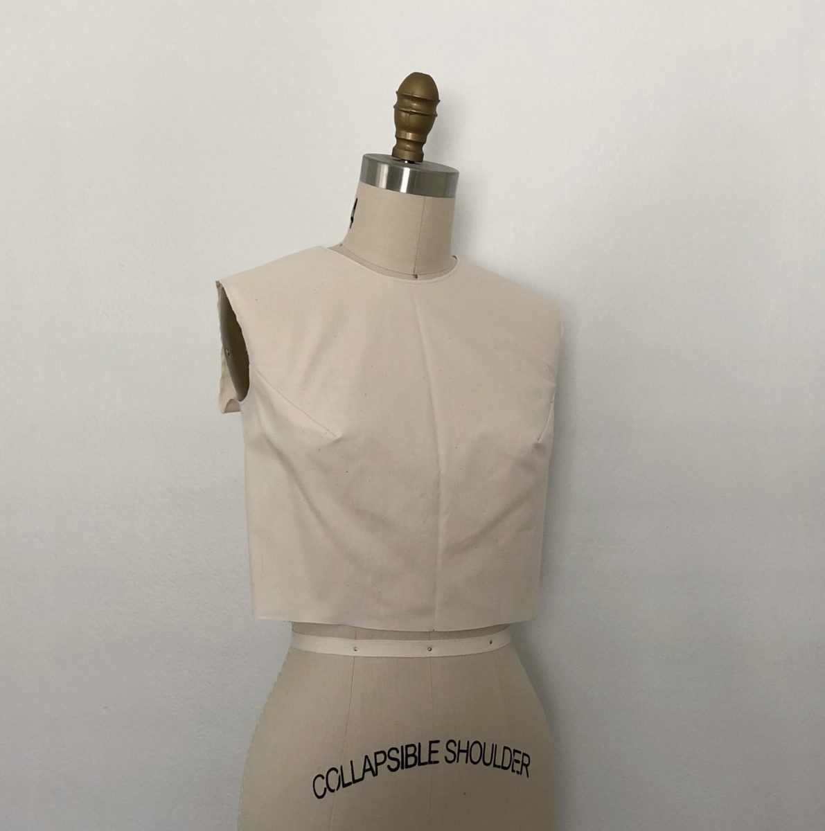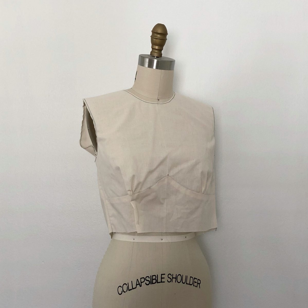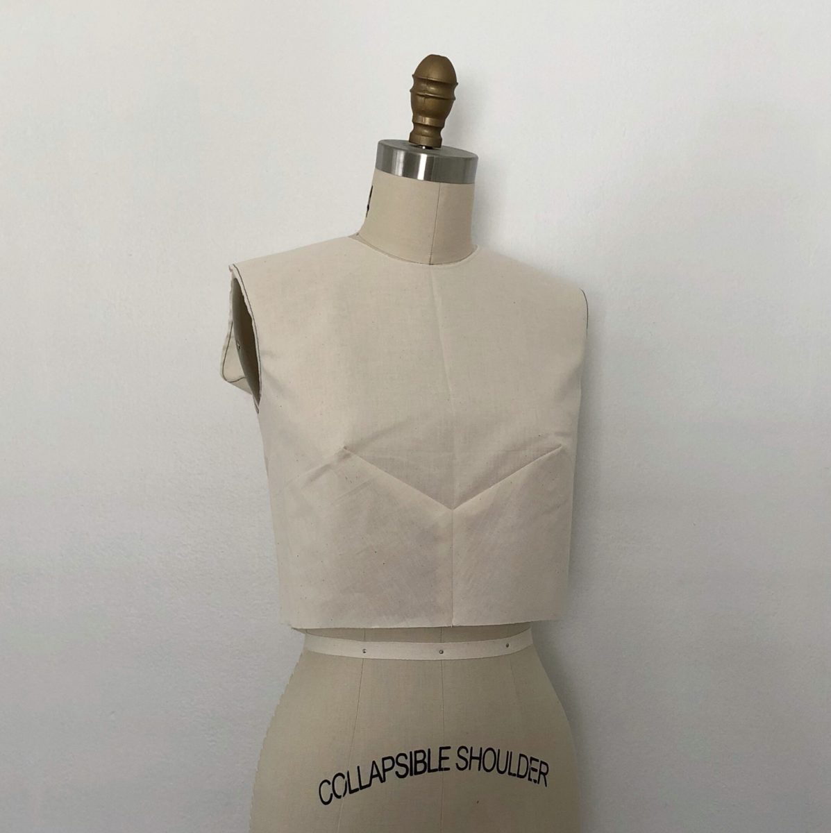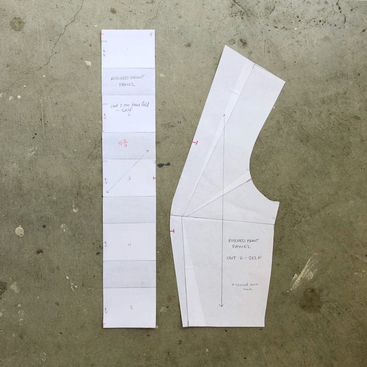 I wanted the bodice of the dress to be fairly short so I used the lengthen/shorten line as the bottom edge. To that I added 1/2″ of seam allowance and squared the corners to make it attach to the skirt a little easier.