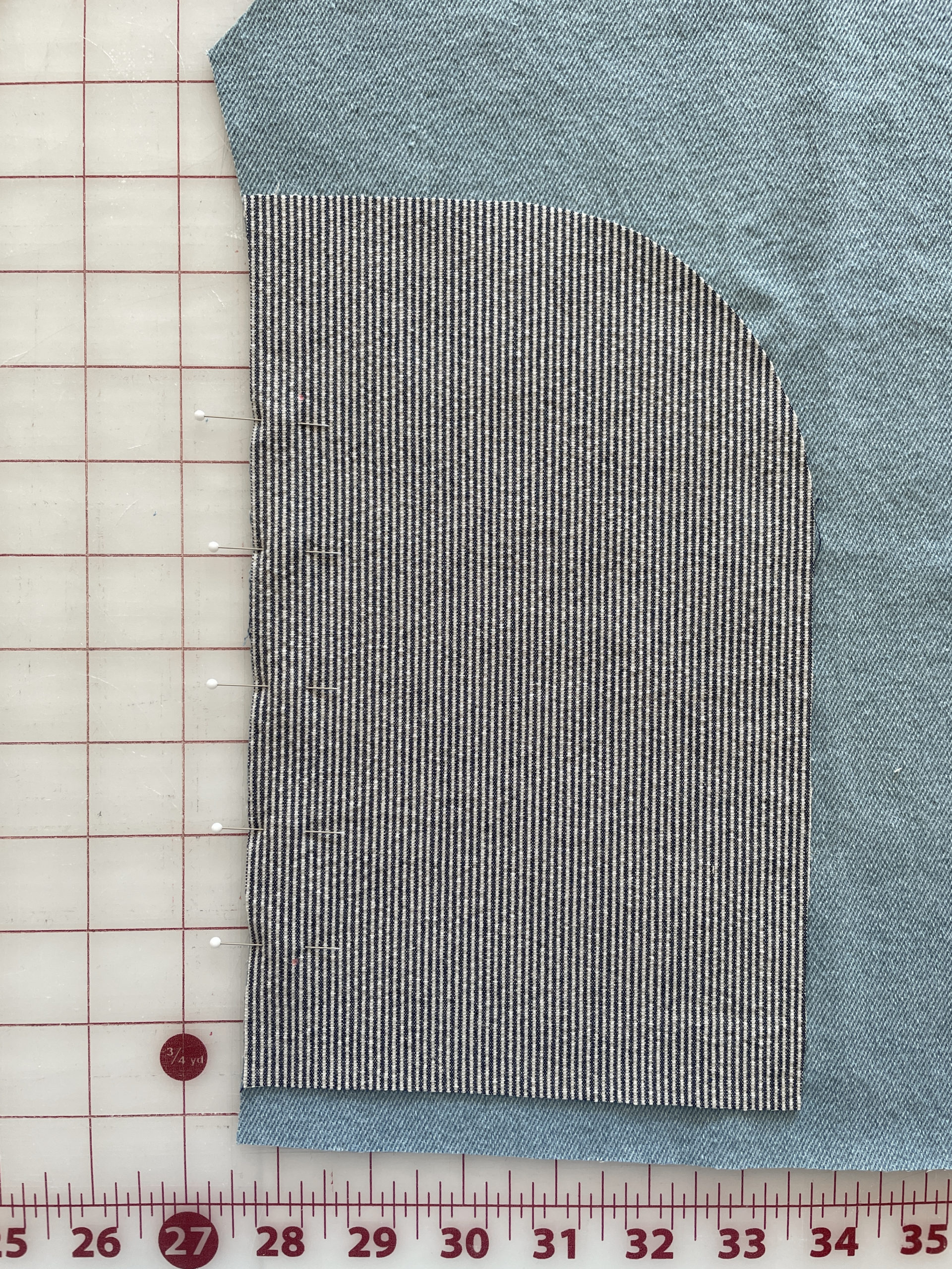 I’m not in the brain space for pants fitting right now – even though I really need pants – so I decided to make the Barons Dress before diving into the Adams Pants. I really love the red photo sample and wanted to create something similar. I chose a 10oz bleached denim from my stash that even had some of the sun bleaching the red canvas sample has.
