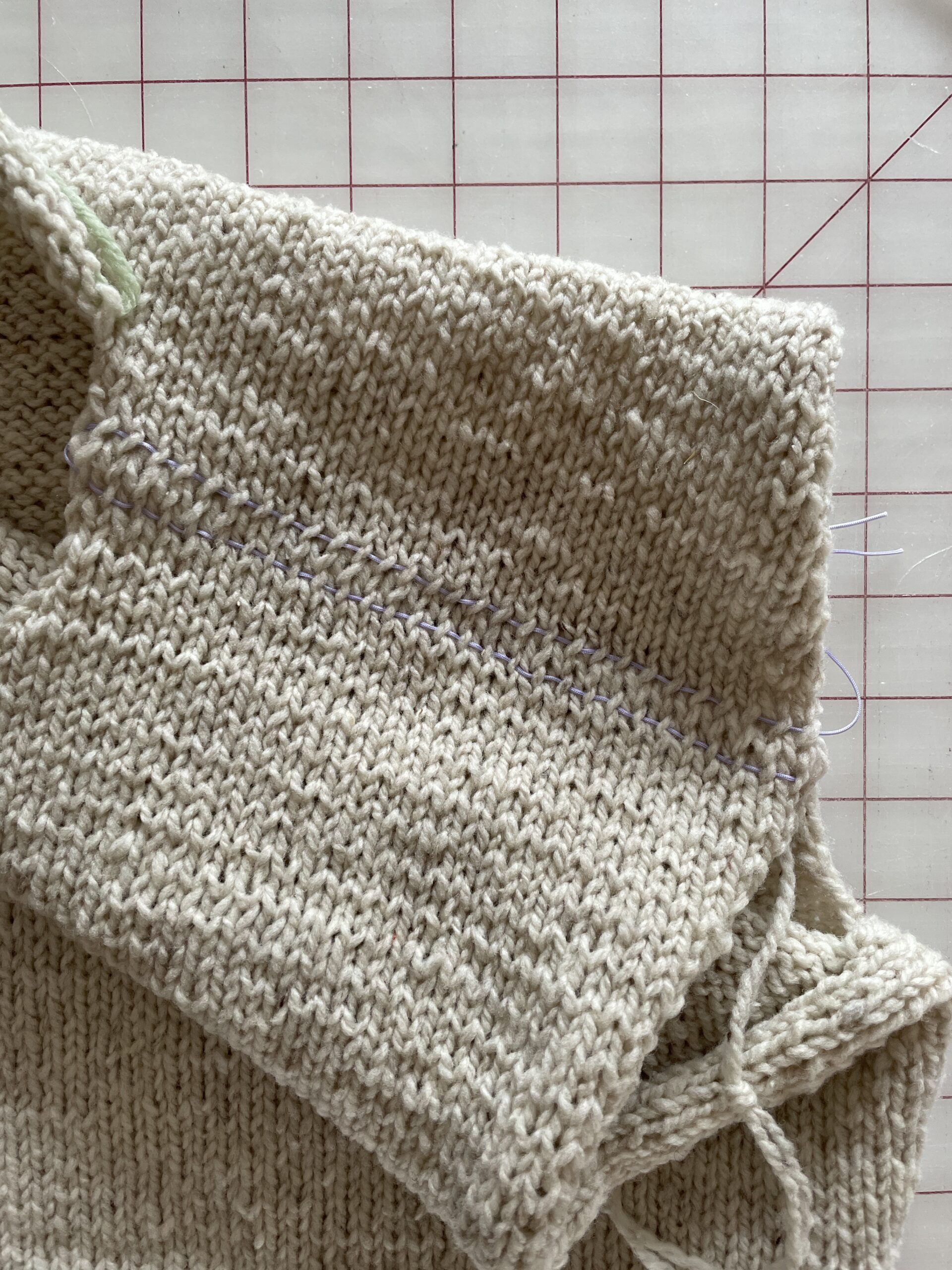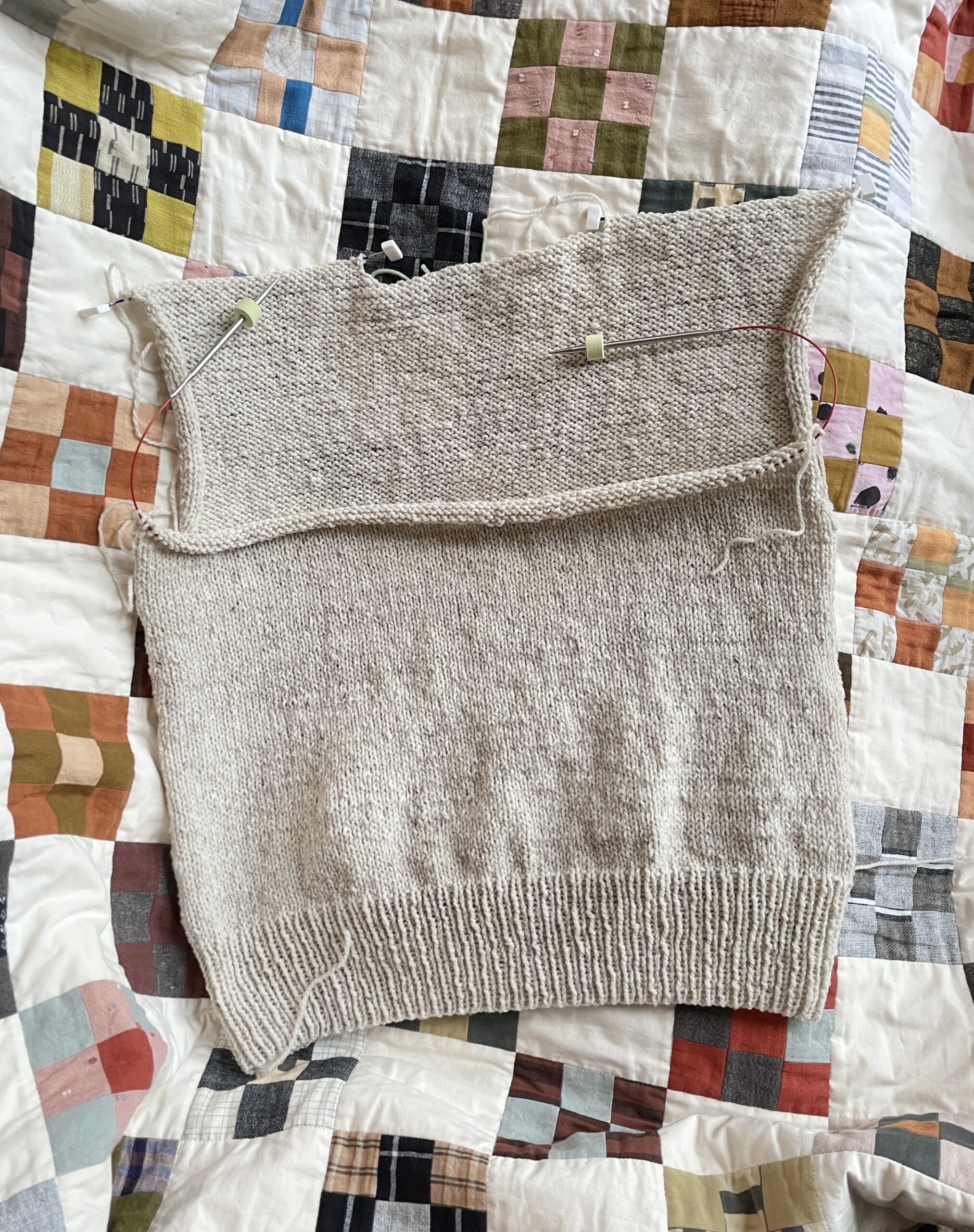 Shortly before starting this, I learned how to knit continental and decided I would knit the Towns entirely in this style. I should have realized during the hem ribbing that my purls were much looser than my knit stitches, but I pushed through, hoping that magical blocking would smooth things out (that only sorta worked). Things got weird once I was knitting flat and there’s definite striping above where I split for the sleeves.