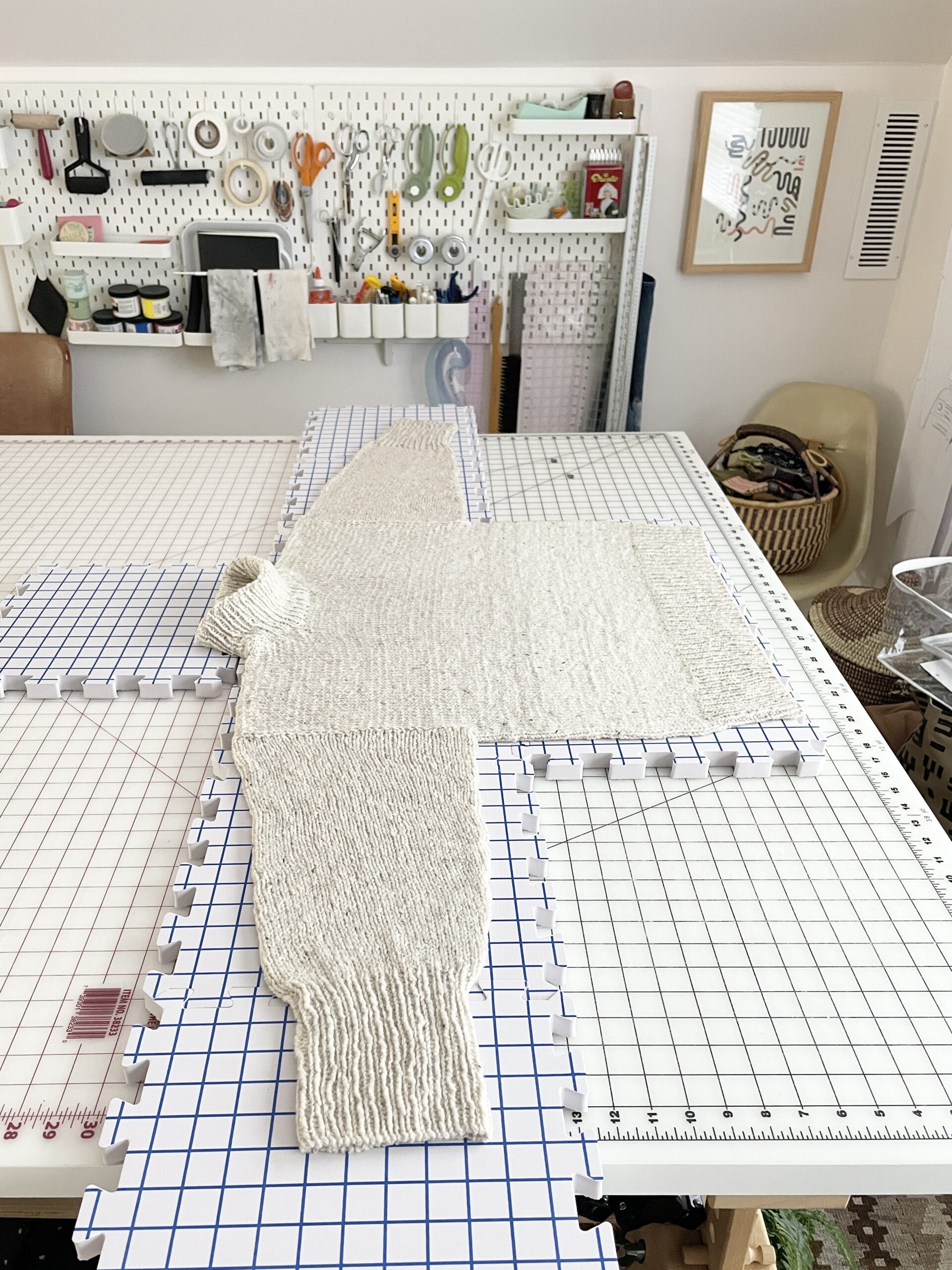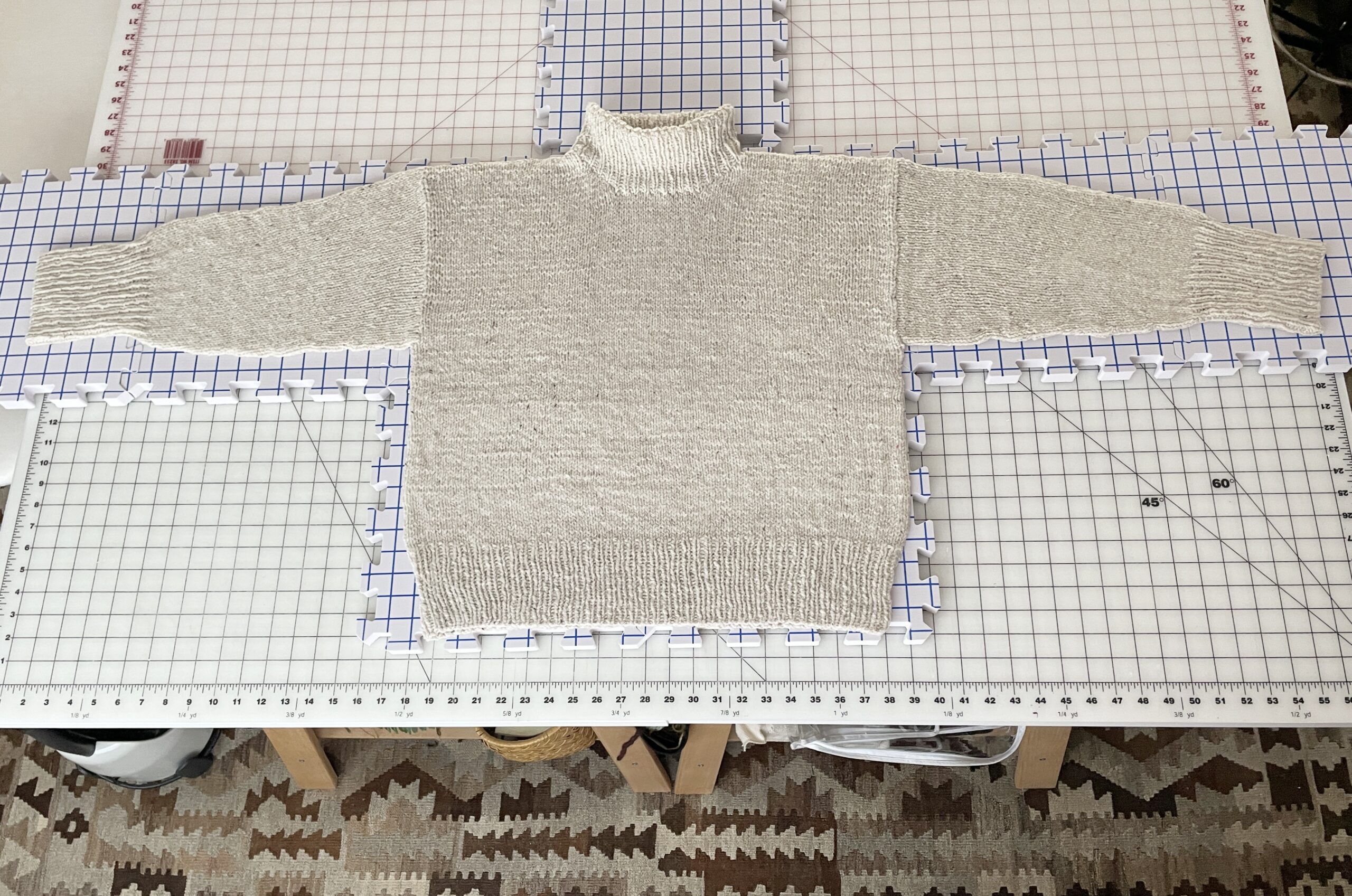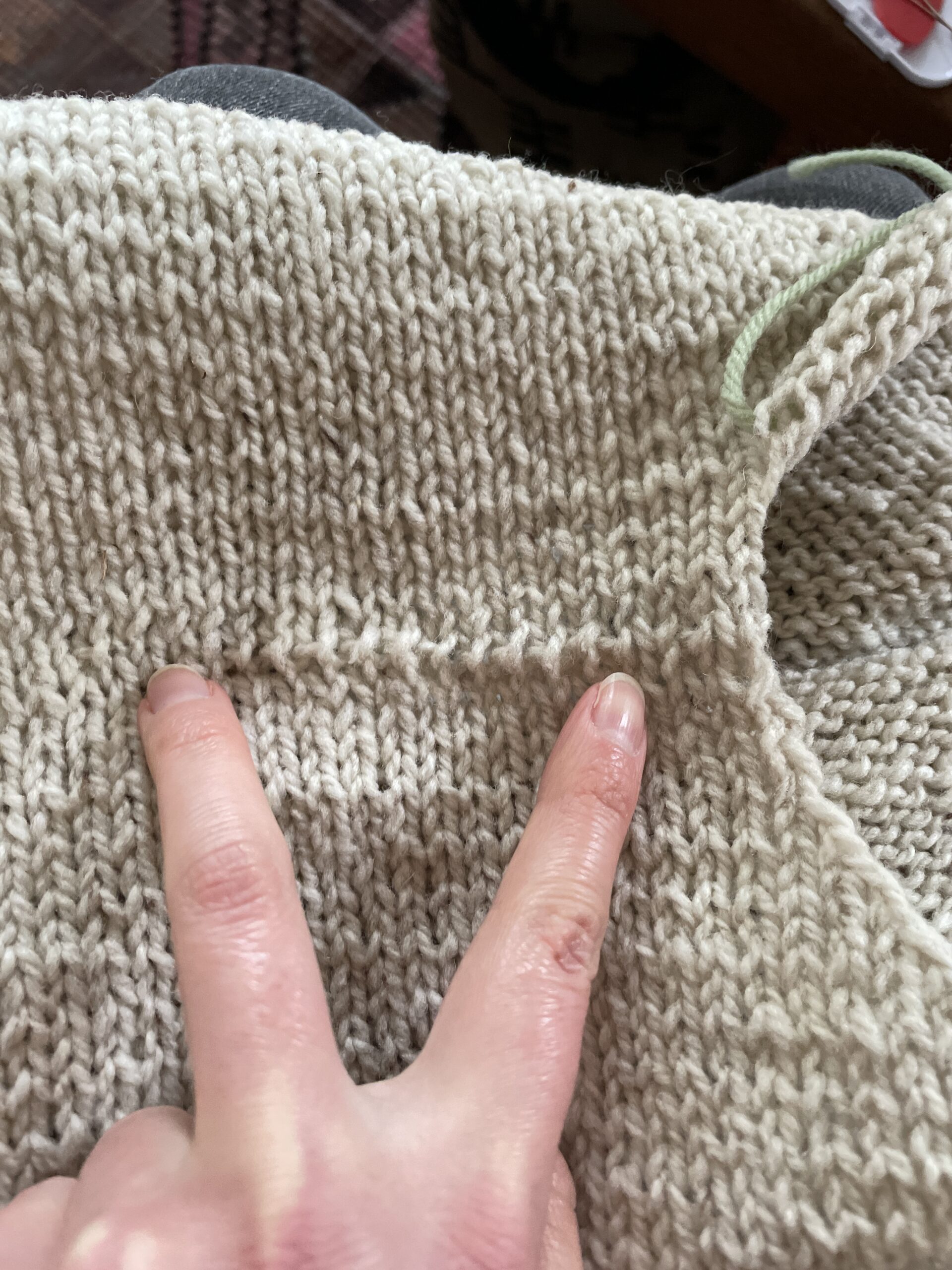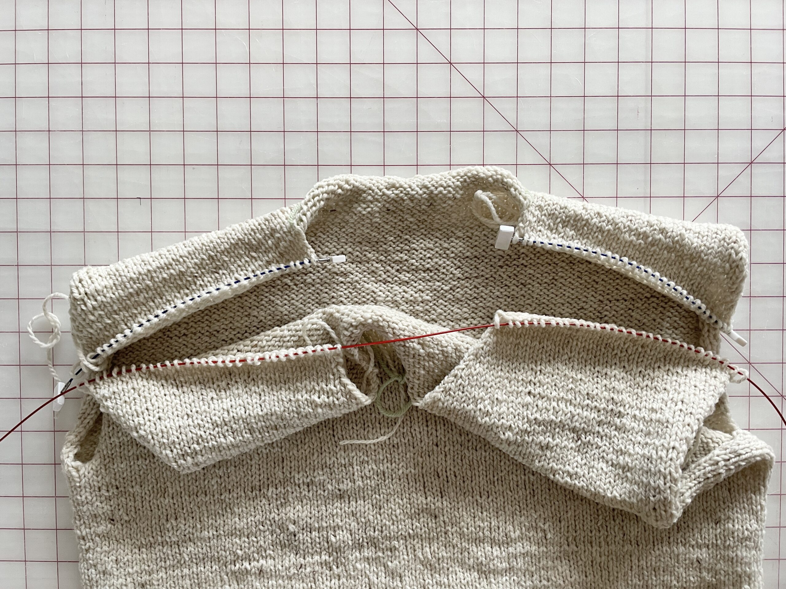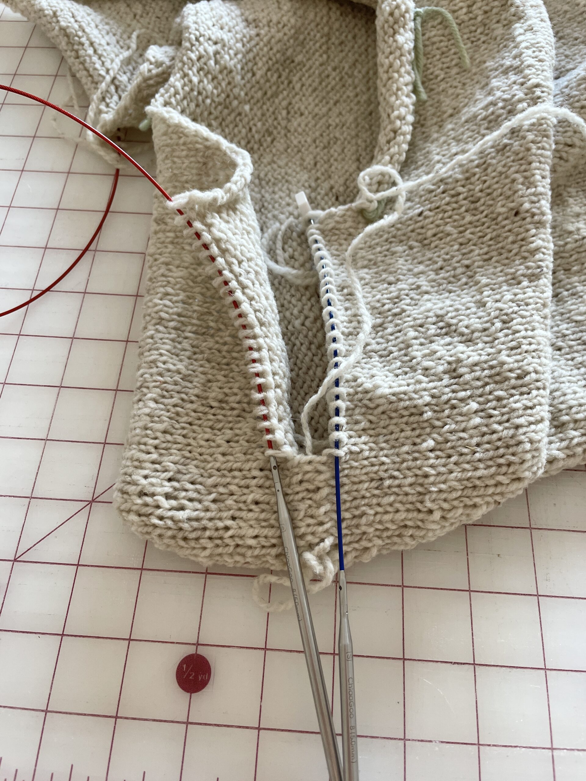 My row gauge is always off, so the first sleeve I made was much too long. Thanks to math, I was able to figure out how many rounds I needed to remove to get the sleeve to be the right length. It was so exciting when it worked, but I did need to knit three whole sleeves to figure it out.