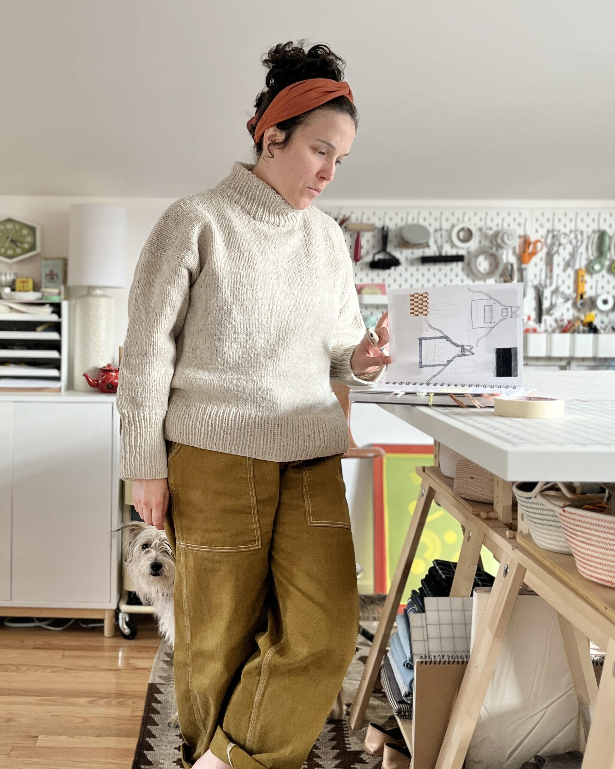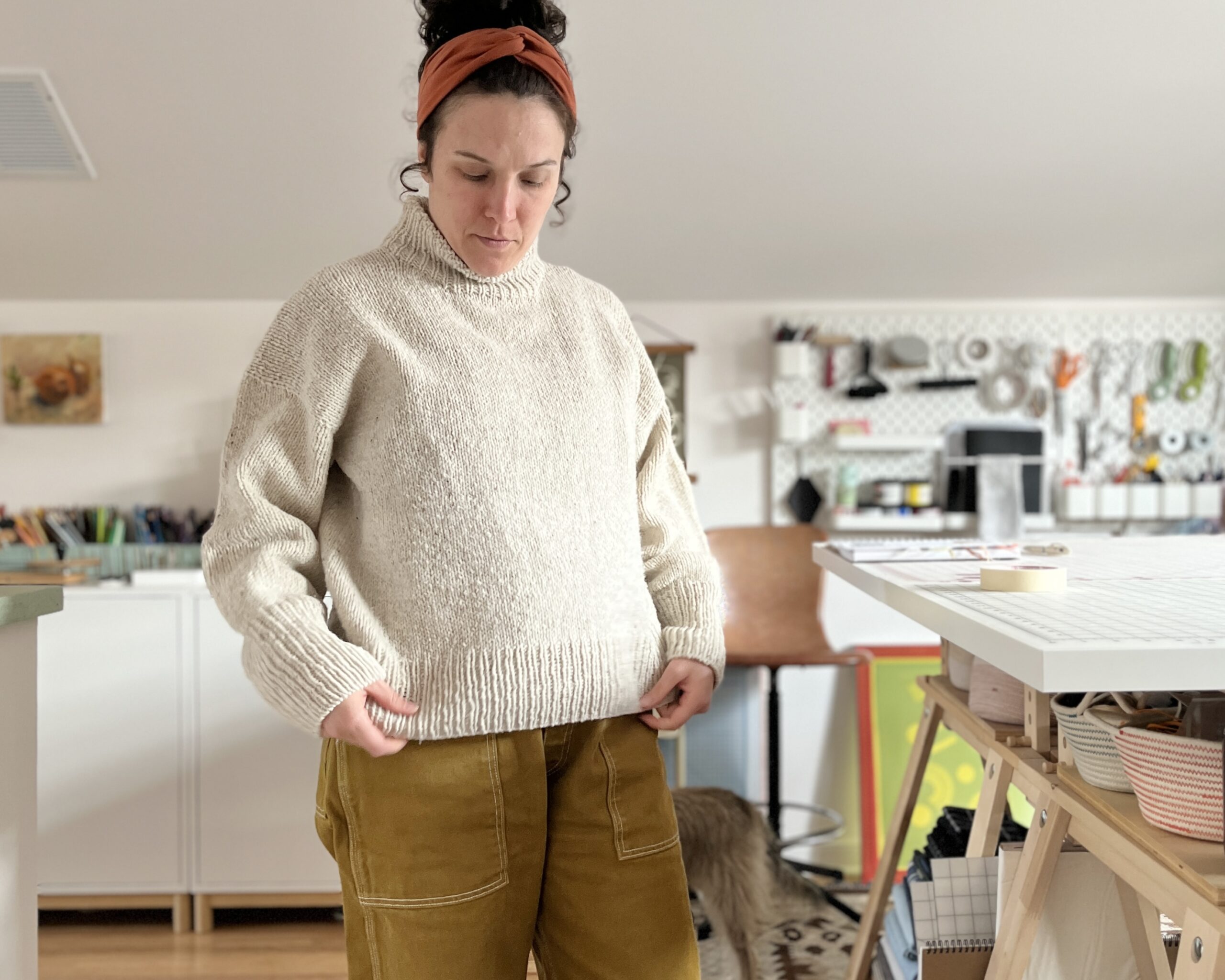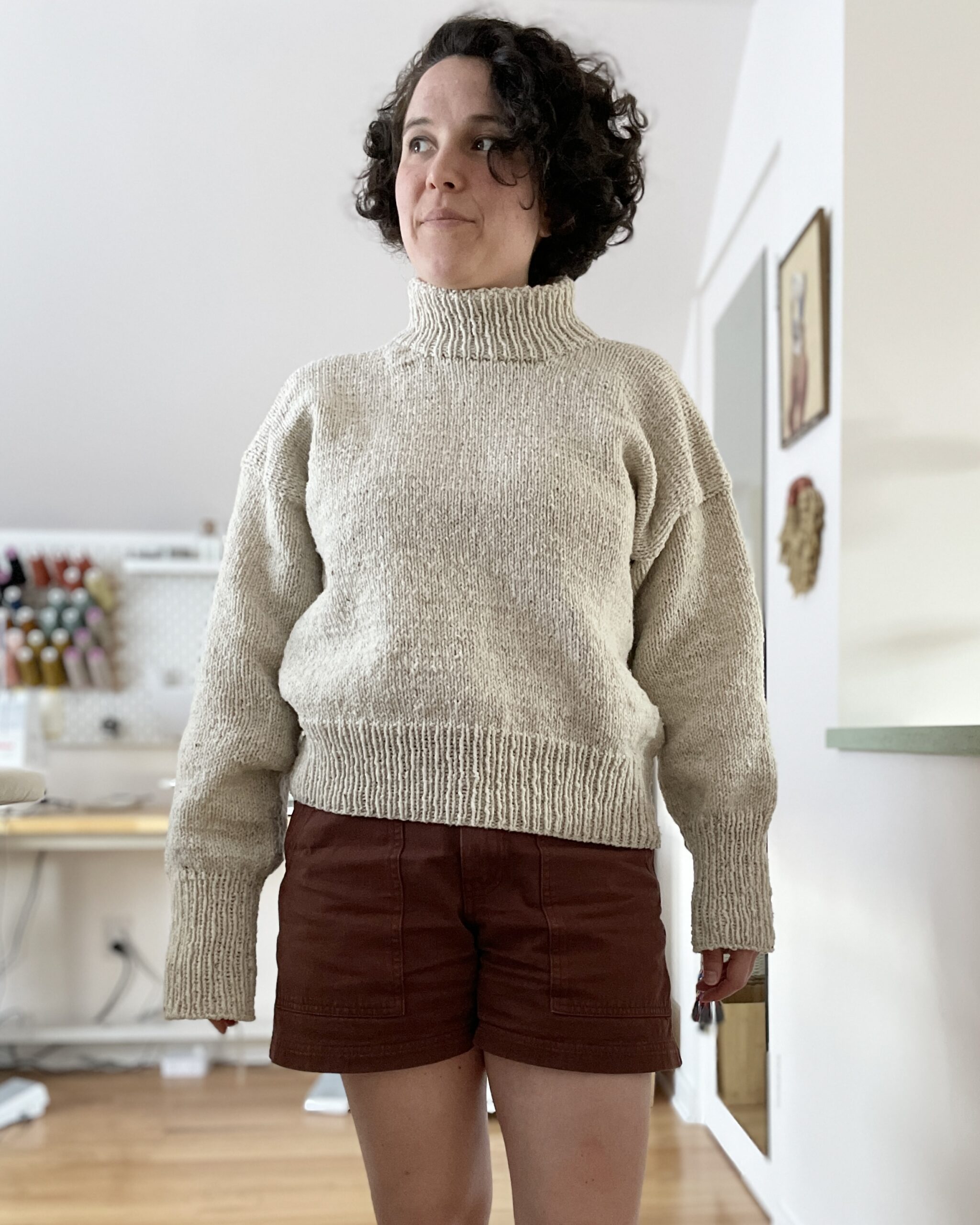I did it. I made a sweater with non-bulky yarn. It’s the Towns Sweater by Ozetta and I made a size M with Brooklyn Tweed’s Shelter in the color Fossil.