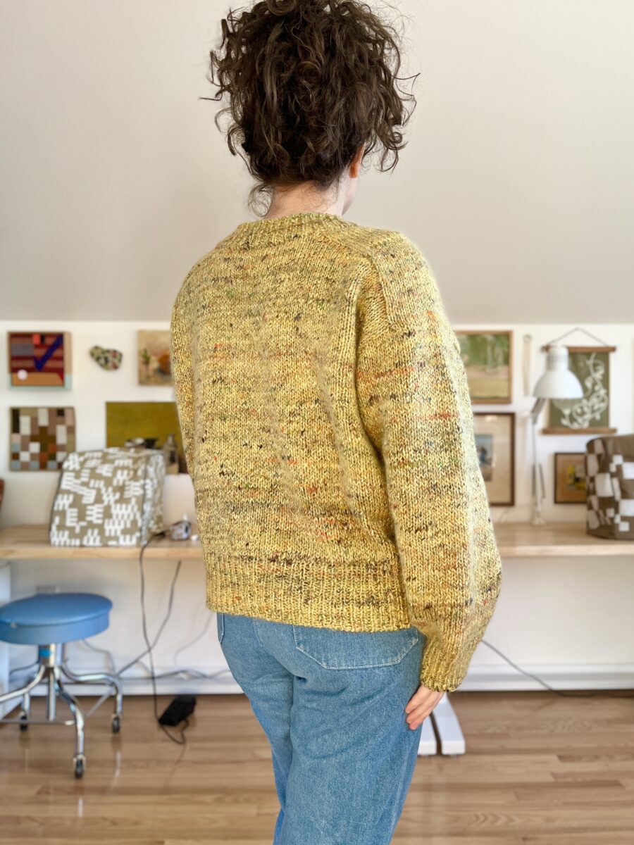 This was my first worsted weight sweater and it was rustic. I knit the whole thing continental and my loose purls caused a lot of rowing out. There were some noticeable color differences in the skeins despite being from the same dye lot. The collar was also just terrible (too high and lumpy).