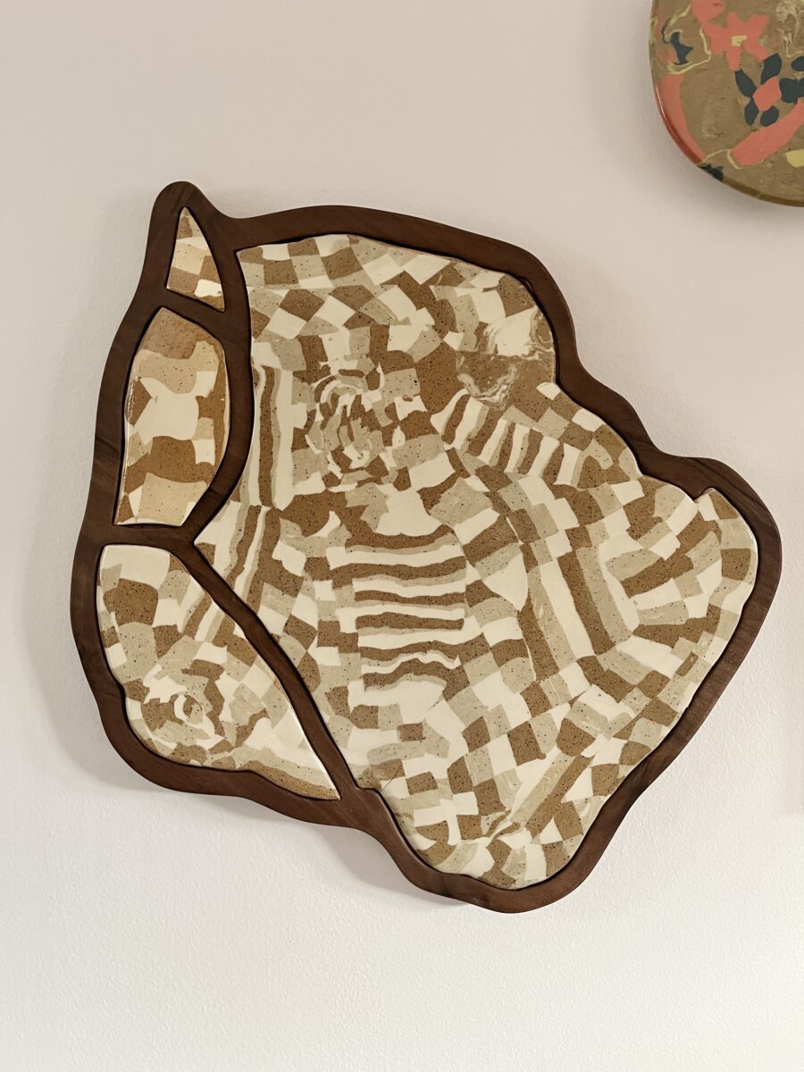 Ceramic and wood are beautiful together so I decided a wood base was the solution. I chose walnut for a nice contrast.
