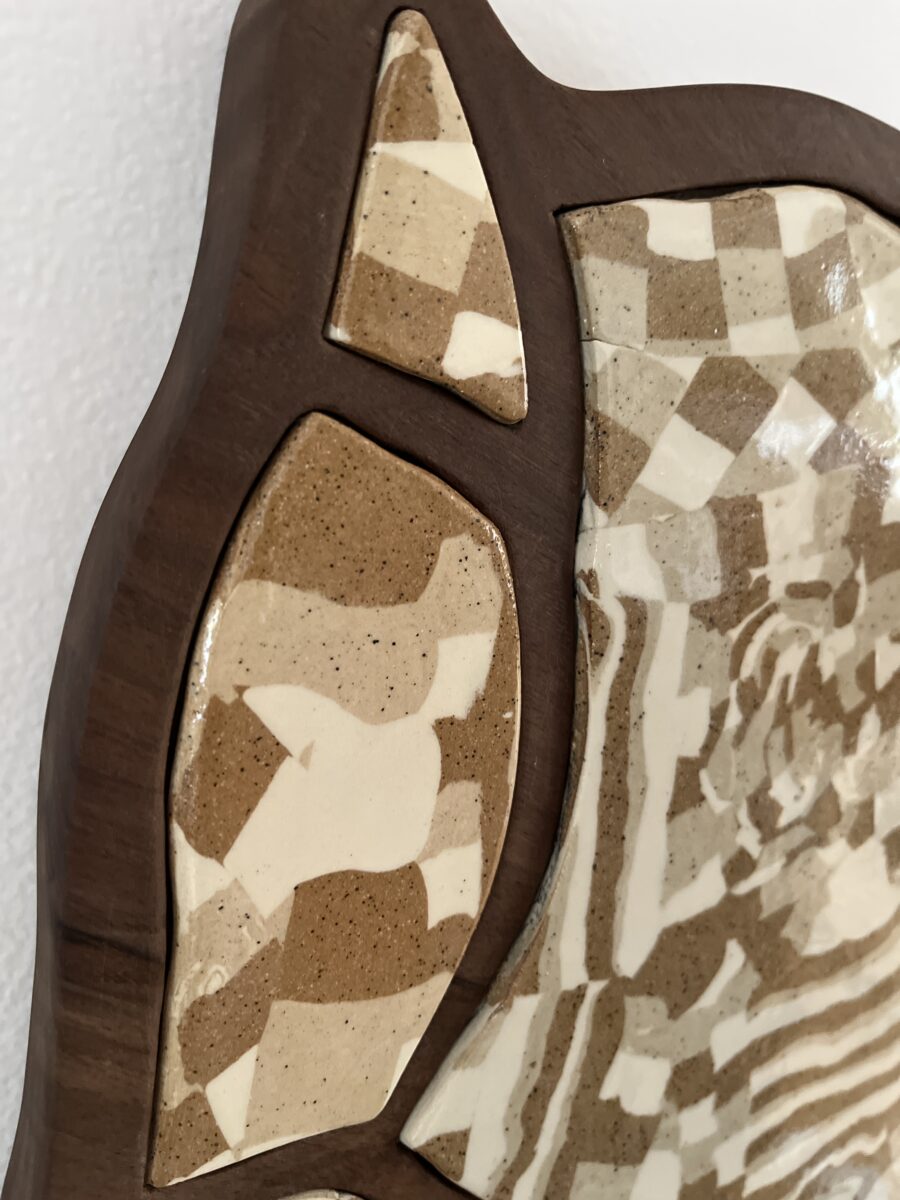 I made this ceramic wall hanging and broke it before bisque firing. I decided to go through with firing it anyway, believing it salvageable.