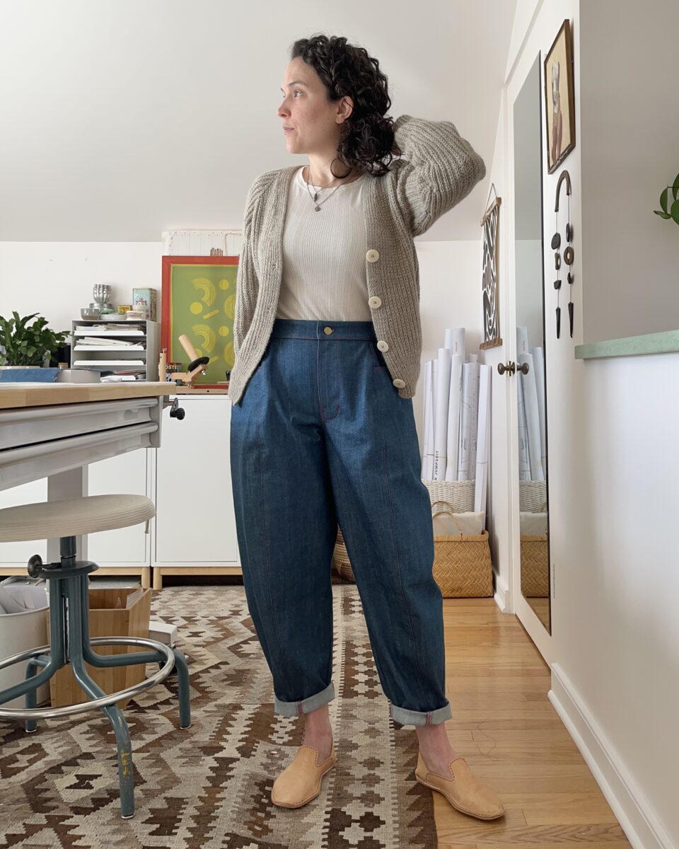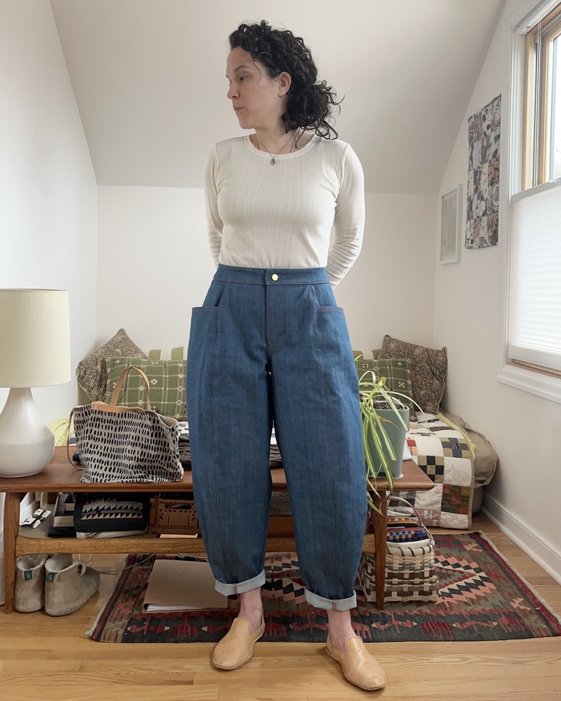I made the Elizabeth Suzann Clyde Work Pants in size 10. I just love how the waistband looks. After one wash, it was already perfectly worn in.