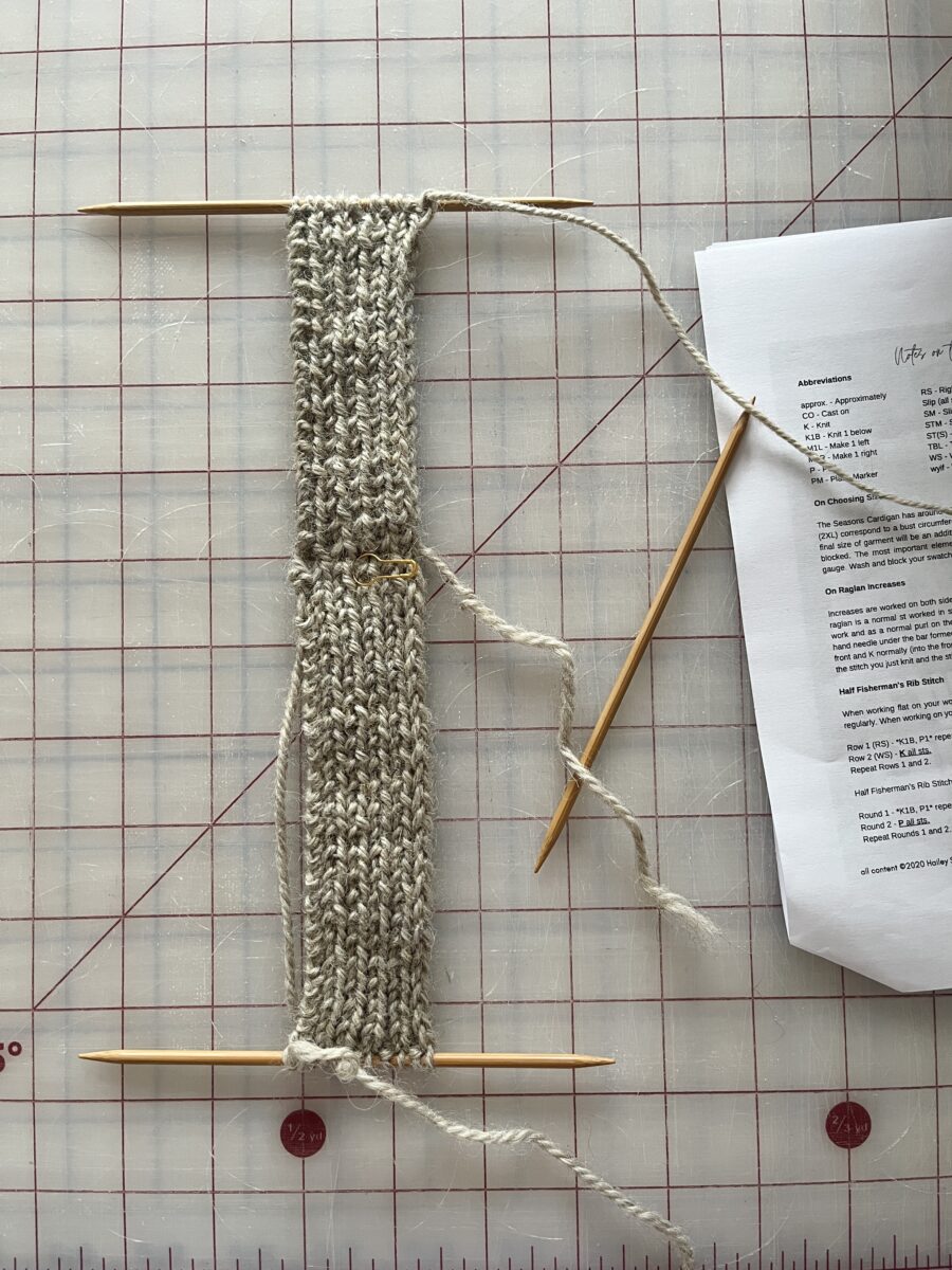 So I ordered two skeins of Knitting For Olive soft silk mohair – one in ‘dusty honey’ and my wildcard color ‘quince’. I ended up going with quince, even though the swatches looked almost identical. I made so many swatches, yet didn’t block a single one ¯\_(ツ)_/¯