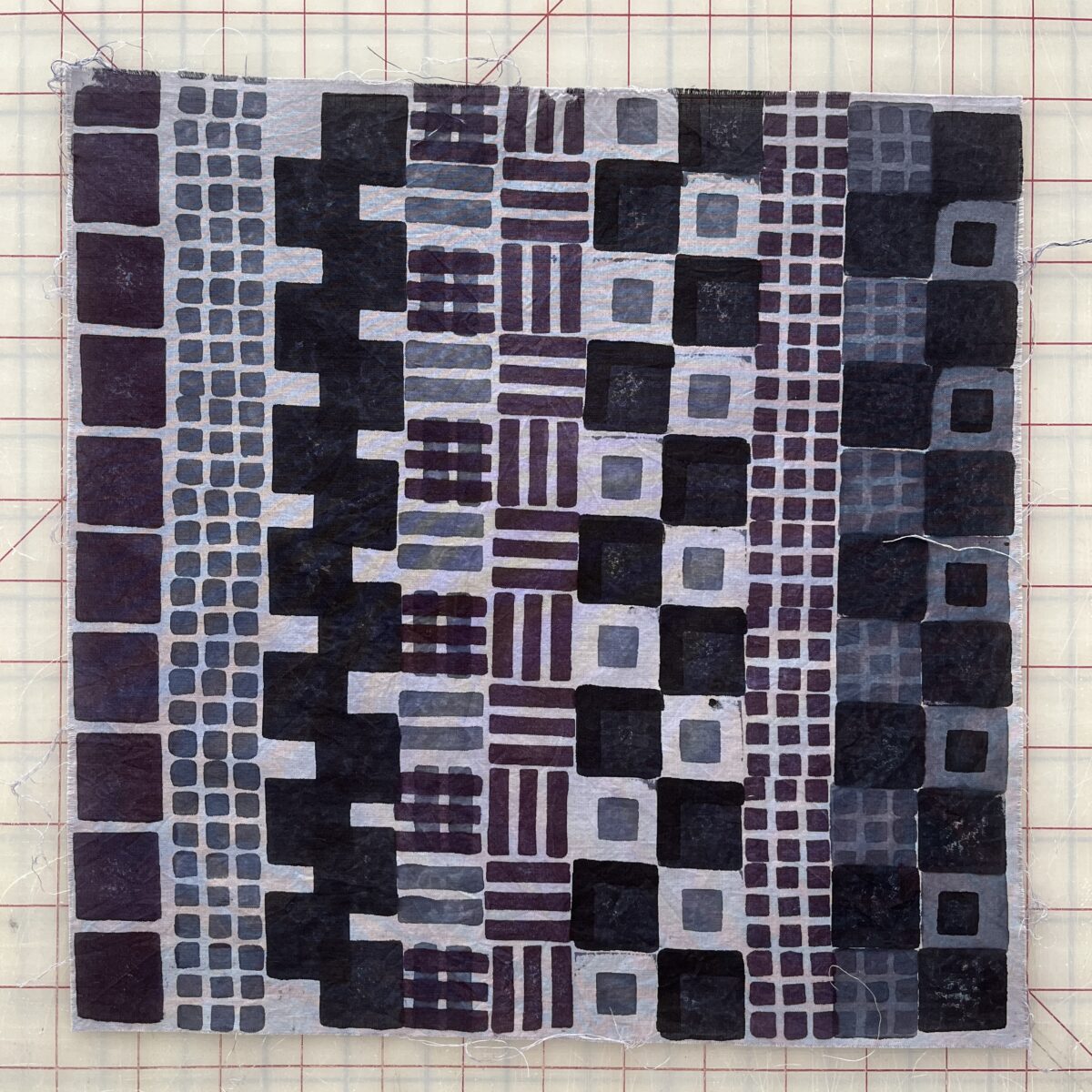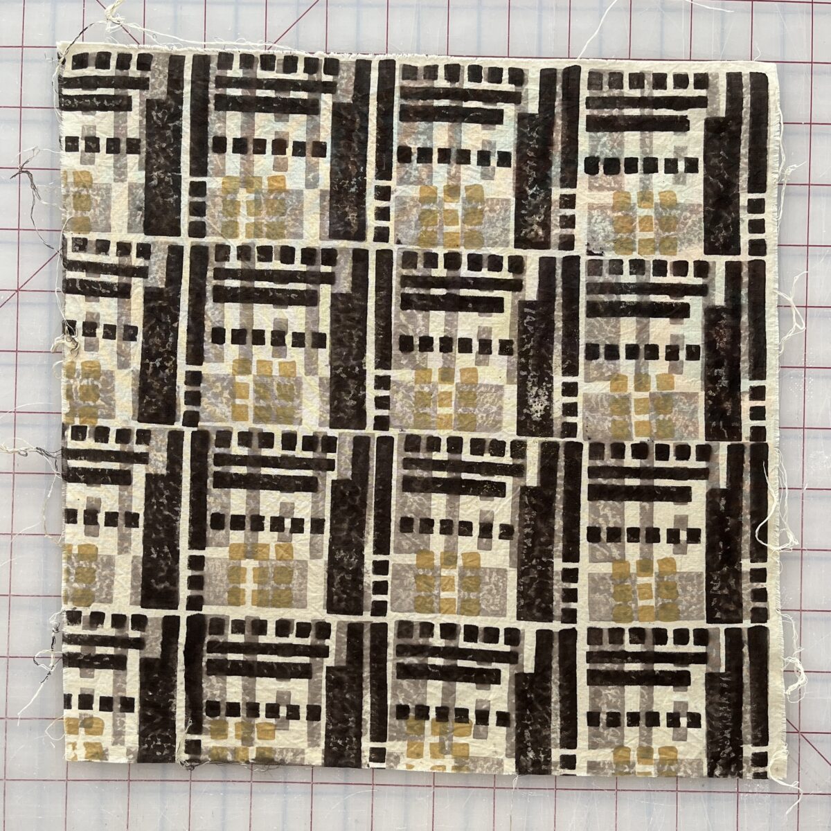 Then I hit a wall. I had used all the surface designs I’d already made into blocks (or screens), plus I’d need to adjust the pattern to fit the 770’s honker size. I made a few mockups and then decided that it would be easy enough to just shave off some length and re-attach a side if necessary. After flipping through an old sketchbook, I decided on a very simple square design. I opted to not print the main pattern piece since there wasn’t an easy way to ensure the surface design would line up neatly.