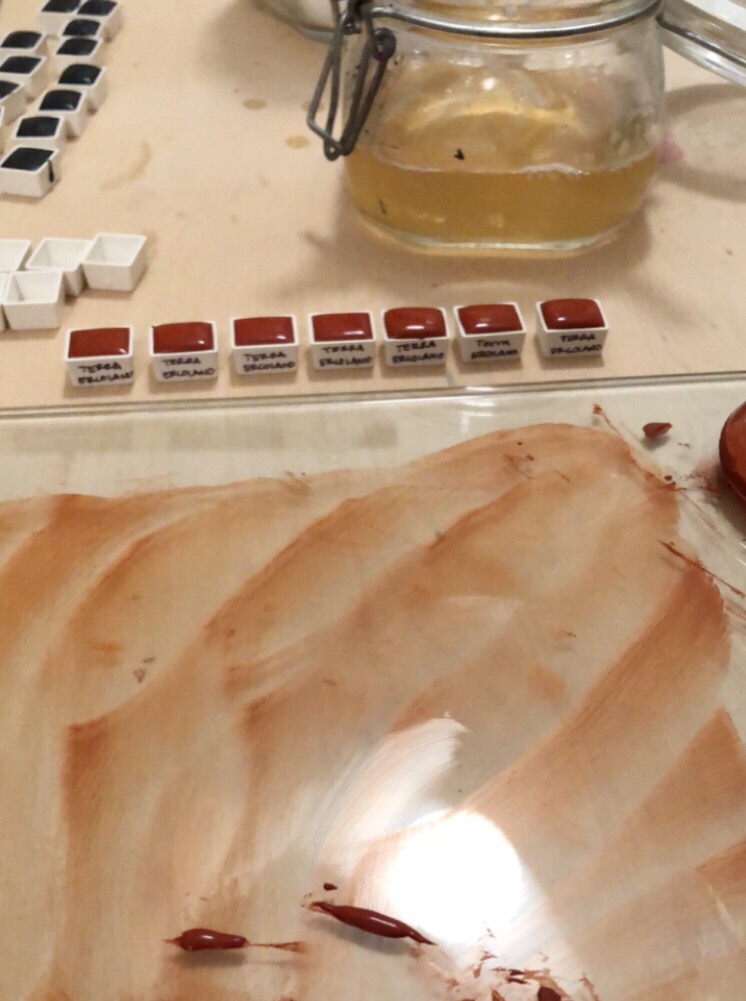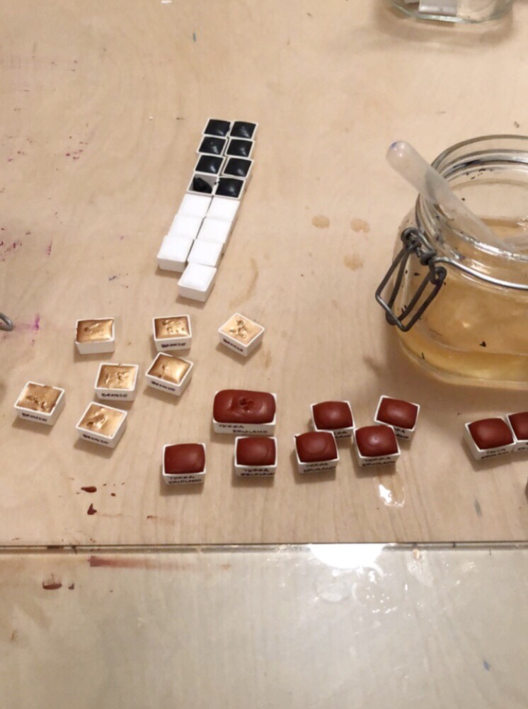 The class description said that you could “design your own scarf” and “unlock your creativity,” but in reality we had to choose from pre-made wood blocks and just two colors of dye. Most of the blocks were intricate floral designs, which are nice, but not my aesthetic. Thankfully I found one “border” block that was sort similar to what I had sketched out before class.